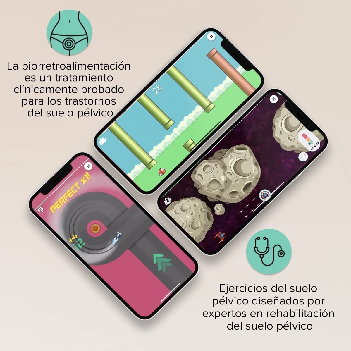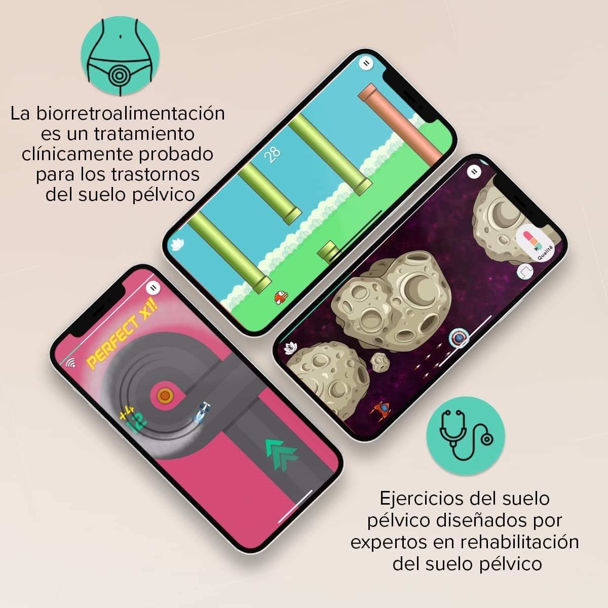 Perifit cuenta con 6 programas de entrenamiento: prevención de trastornos del suelo pélvico, incontinencia de urgencia, incontinencia de esfuerzo, bienestar íntimo, recuperación postparto e incontiencia mixta. Su app está disponible tanto para Android como para IOS y es 100% gratuita. En su app encontrarás 11 videojuegos como tal que se irán desbloqueando según avances de nivel.
