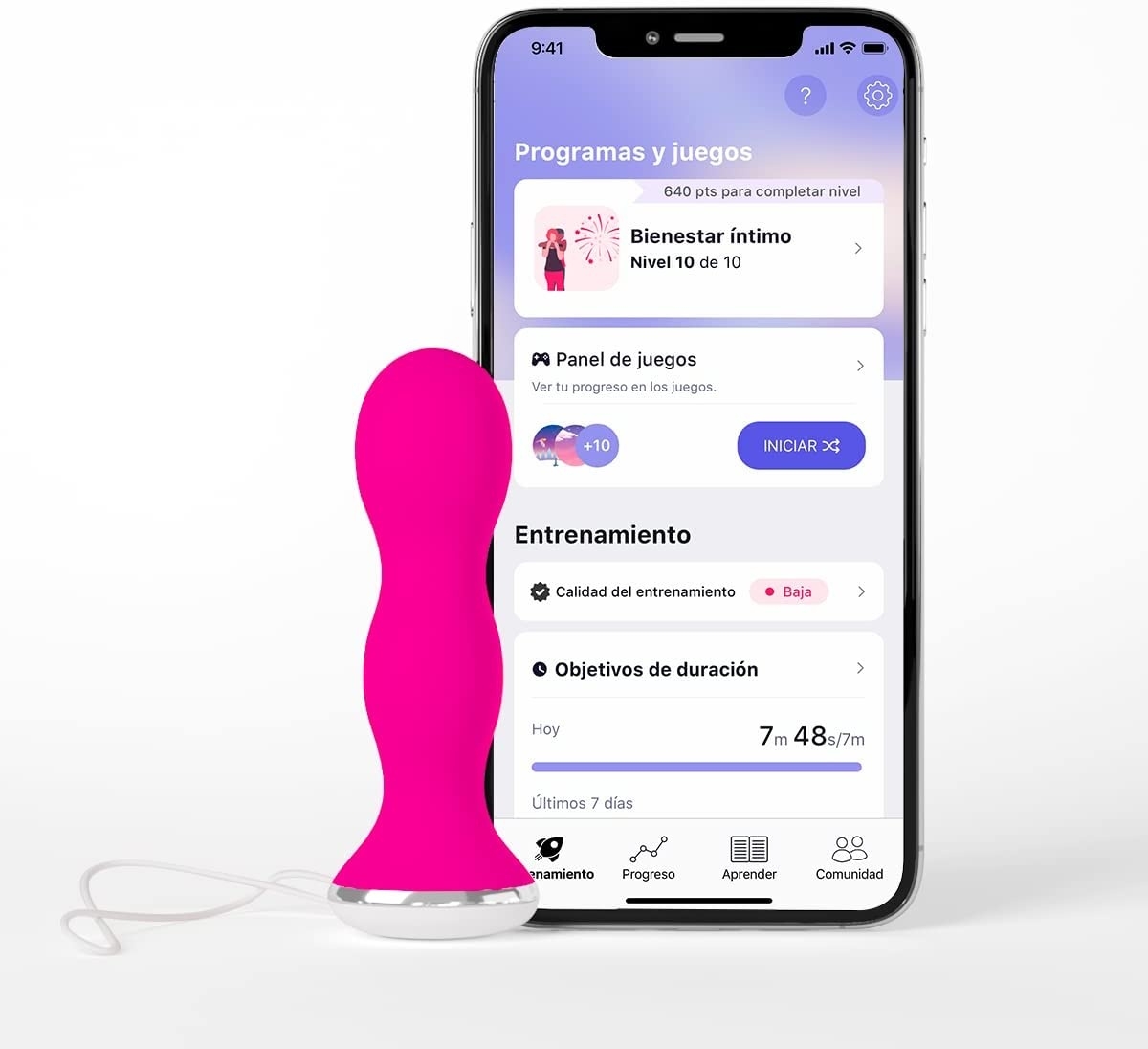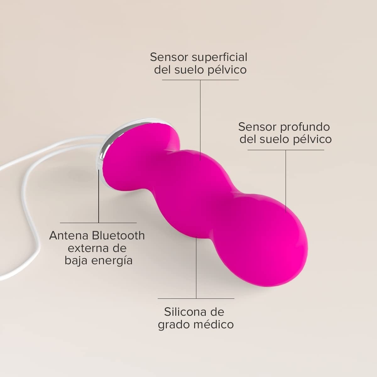 Te ayuda a fortalecer y ejercitar los músculos de tu suelo pélvico ayudándote a detectar las contracciones incorrectas para que realices correctamente los ejercicios de Kegel.