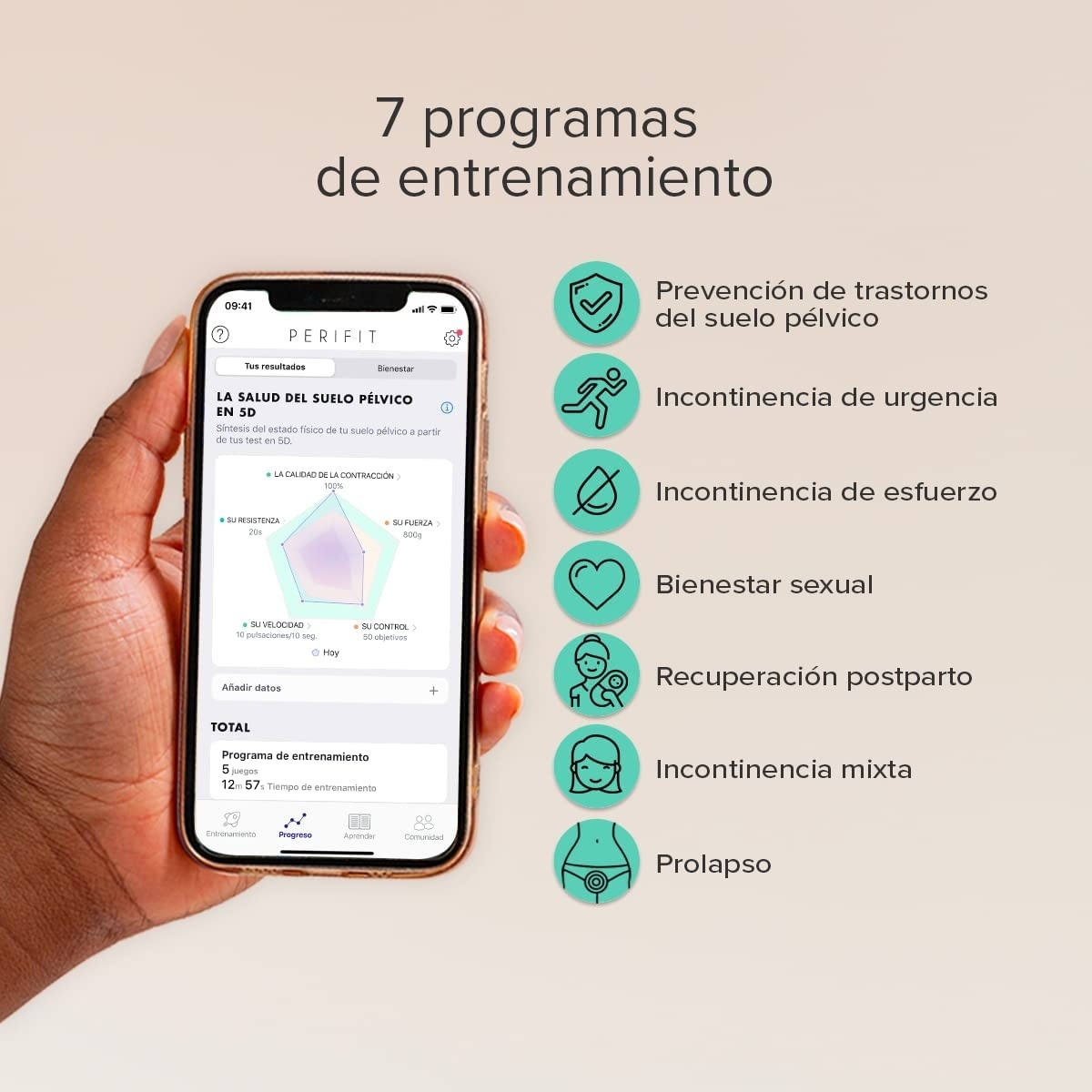 Normalmente las aplicaciones traen entrenamientos específicos: para pérdidas de orina, para prolapsos, mantenimiento, recuperación post-parto... Para que puedas escoger el plan que mejor se adapta a ti. Incluso muchas apps permiten personalizar recordatorios para que no se te olvide practicar.