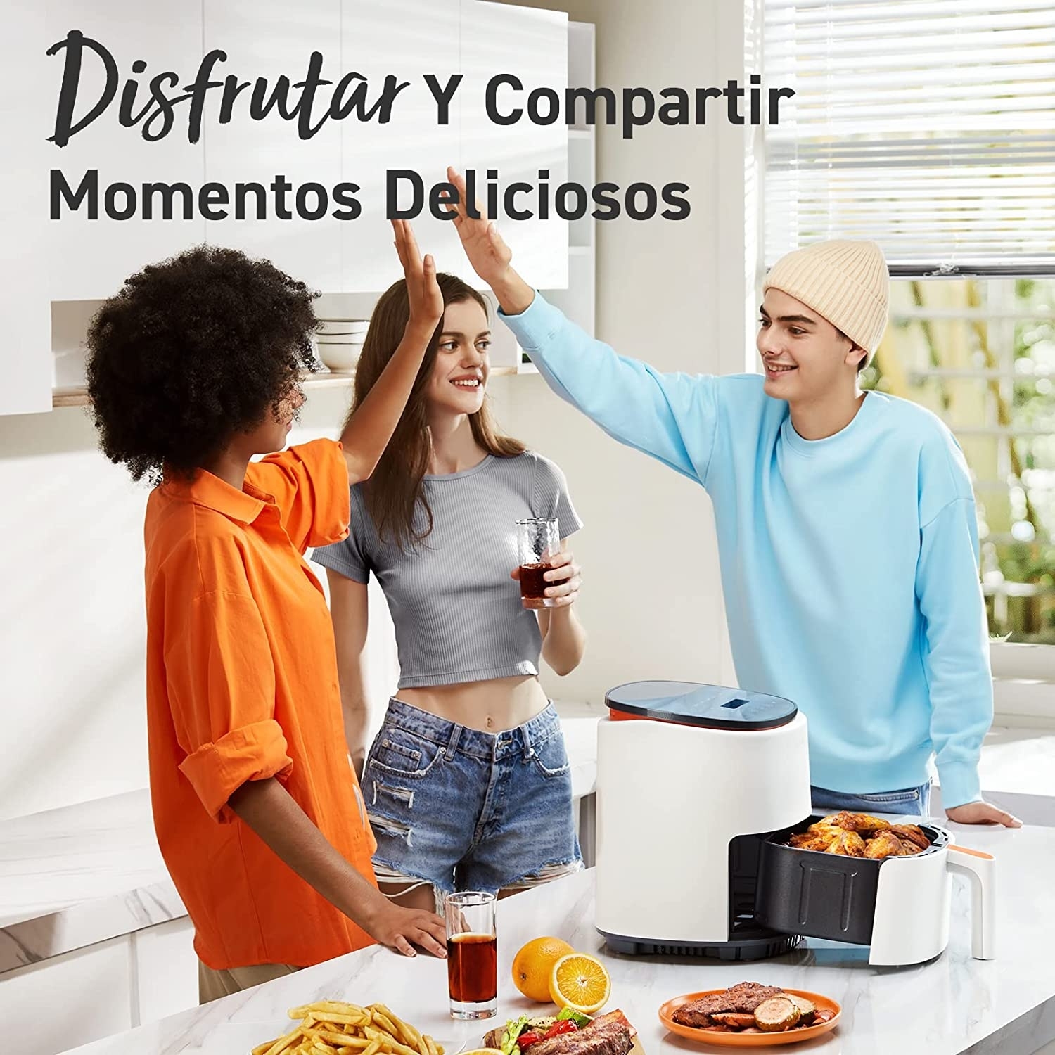Es muy rápida y en 15 minutos puedes tener fritos productos pre congelados como las patatas fritas o alitas de pollo.